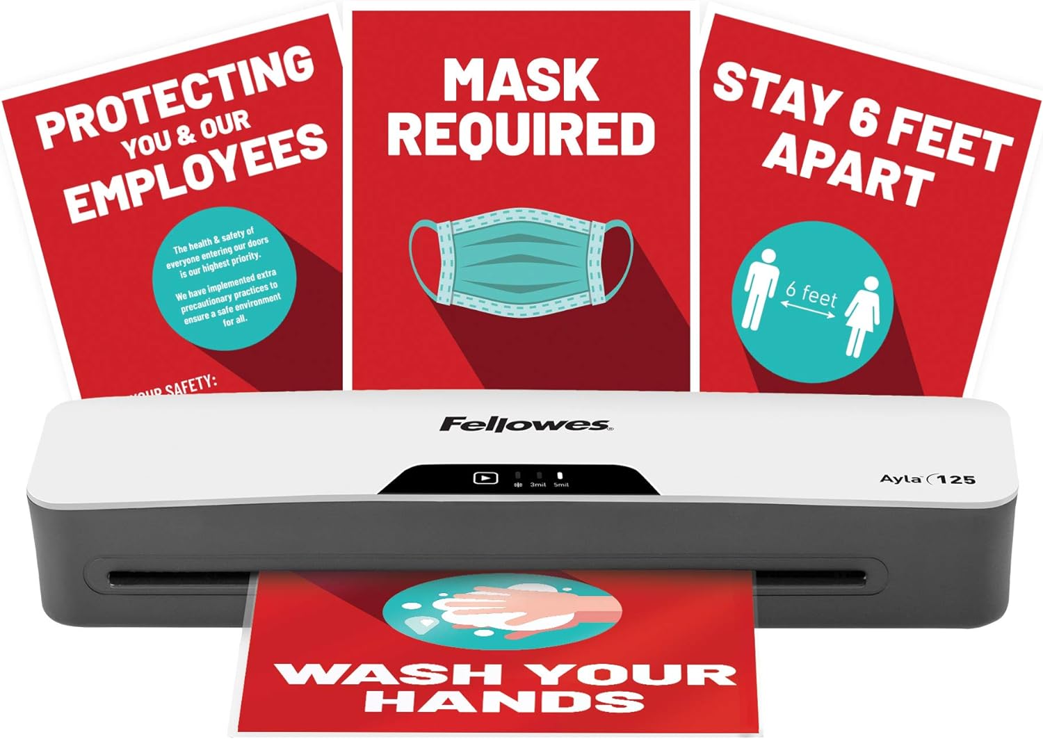 Home OFFICE PRODUCTS Fellowes Ayla 125 with Rapid 1 Minute Warm Up Paper Laminator Including Pouch Starter Kit (5752001)